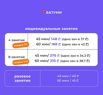 Занятия проходят по адресу г. Батуми, Инасаридзе 16а (рядом с Grand Mall, и Онлайн (по договорённости)